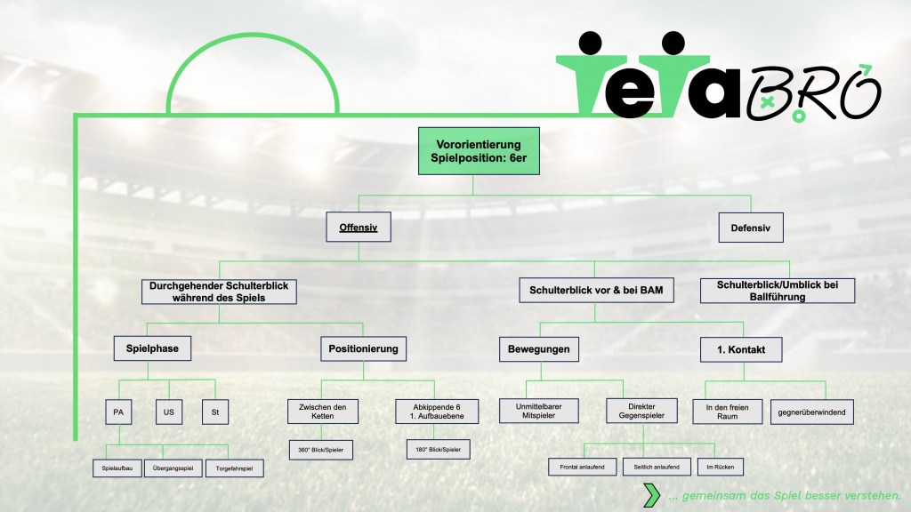 Anschließend hierzu zeigen wir Dir einen methodischen Weg, wie Du die Vororientierung Deiner Spieler systematisch im Trainingsprozess (Individualtraining, Übungsform/Rundlauf, Spielform & Rondo) verbessern kannst.